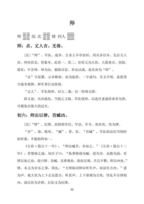 在《易经》的占卜中,如果你得到了老师的占卜,这意味着你需要花更多的精力来准备行动计划,并采取实际行动来实现你的目标。如果老师的占卜来自“第九天”或“第六天”,这意味着你必须小心,因为失败是可能的。如果你能全力以赴,投入所有的精力,你可能会做到最好,最终取得成功。