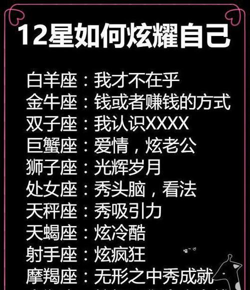 :结语星座是一种有趣而神秘的文化现象,可以解释情感和职业的特征。那些喜欢炫耀星座的人可能会获得自我确认和归属感,并帮助他们结交新朋友。