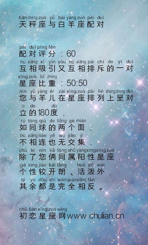平衡男人和白羊座女人是天生的一对,他们可以互补彼此的优缺点,建立稳定的关系。白羊座女人的活力、冒险精神和平衡男人的主动性和协调能力相辅相成。两个人之间的默契很高,可以互相理解,一起追求更好的生活。