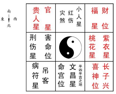 子(鼠)对应方位:正北方(坎宫)丑(牛)寅(虎)对应方位:东北方(艮宫)卯(兔)对应方位:正东方(震宫)辰(龙)已(蛇)对应方位:东南(巽宫)午(马)对应方位:正南方(离宫)未(羊)申(猴)对应方位西南方(坤宫)酉(鸡)对应方位:正西方(兑宫)戌(狗)亥(猪):对应方位:西北(乾宫)