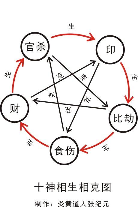 月令十神:正印,偏印(生我者),伤官,食神(我生者),正官,偏官(克我者),正财,偏财(我克者),劫财,比肩(同类者)。