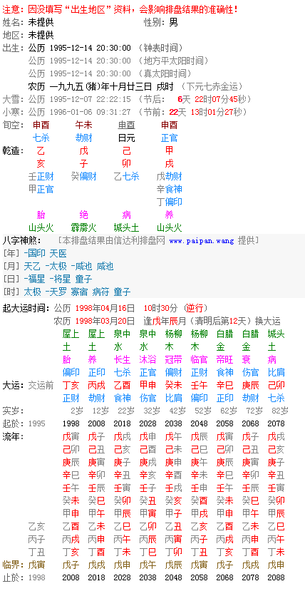 八字分析中,除了配置五行等关键因素之外,还有很多个人习惯和意识等因素会影响个人生命的发展。对于土生土长的农历1995年5月23日出生的人,这些建议可以有所借鉴: