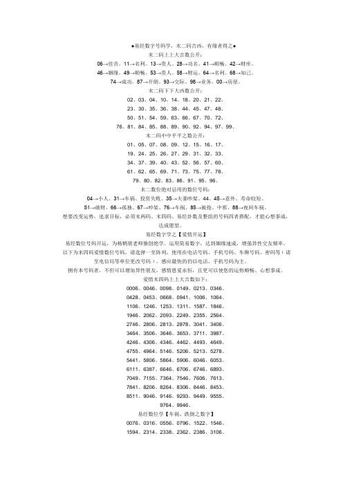 在生活中,不管是怎样的人生道路,在追求成功的过程中都有着自己的信仰和理念,而作为中国传统文化的重要组成部分之一的易经,一直以来都深受很多人的崇拜和喜爱。根据易经所规定的方法来计算号码的吉凶,通过这种方式的思考来为自己的人生增添一抹不同的色彩。在本篇文章中,我们将为大家易经号码后四位吉凶的含义和解读。