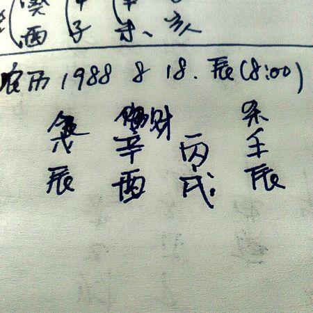 1988年农历12月22日,阳历是1989年1月29日,星座是水瓶座(1月21日~2月19日)生肖属龙。八字是:戊辰年乙丑月己丑日(缺时辰)