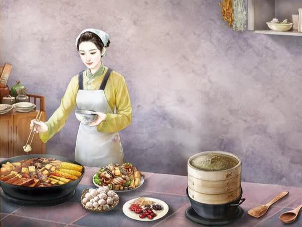 【来源】唐·王建《新婚娘》:“三天入厨,洗手做汤。不熟悉姑食性,先送姑姑品尝。”
