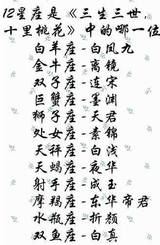 《三生三世十里桃花》是一部关于爱情、仙侠和战争的奇幻剧,受到许多观众的喜爱和追捧。每个角色都有自己独特的个性和特点,这也让人们想知道他们的星座是什么?