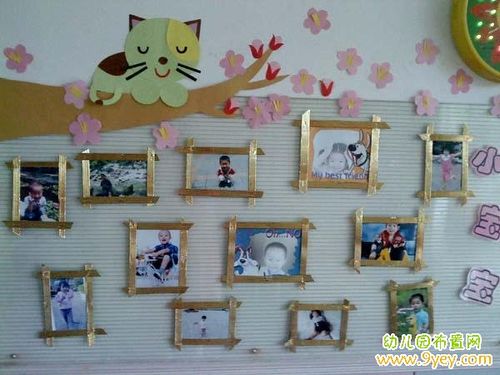 5、最后,孩子的名字或相关信息可以用贴纸或彩笔写在旁边,使整个照片墙更加完美。