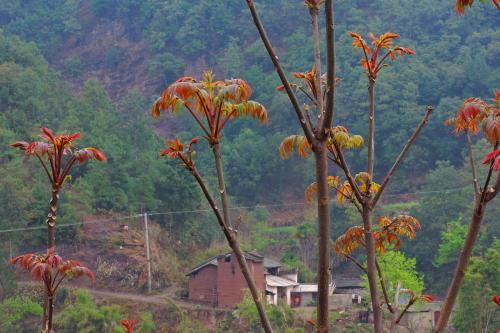 香椿树生长高度适中。在庭院中种植香椿树可以画龙点睛,装饰庭院环境。同时,它还可以增加庭院的绿色气息,使庭院更加生动。