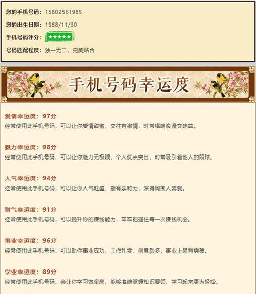 中国一切都注重风水吉祥,手机号码也有风水,每个数字能量不同,排列组合手机号码不同,手机号码会影响用户的财富,所以我们想检查他们的手机号码是好是坏,如果坏需要更改号码,可以避免坏。