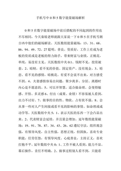 数字能量磁场存在于手机号码中。这种能量可以给我们带来好的或坏的影响。生活中的好运和厄运是不可预测的。如果我们想一直有好运气,我们需要有好的数字能量。我们可以通过《周易》中的数字能量查询表来分析数字磁场和能量之间的关系。