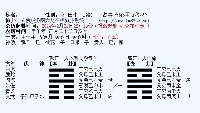 相互占卜是解释占卜的重要内容之一。火金占卜是地震,代表雷。占卜中,雷在上部,火在下部。火与地共同形成地震,意味着自我超越的能力受到限制,可能导致最终失败。这也意味着我们需要更深入地了解内部、最近和未来的变化,并尝试解决不合适的因素。