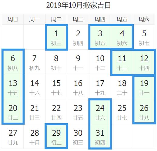 2019年5月搬家吉日共10天
