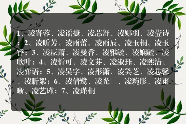 女孩的名字需要有灵气和温婉之感,同时要有着高雅的气质和内蕴。以下是一些很有诗意的凌姓女孩取名:
