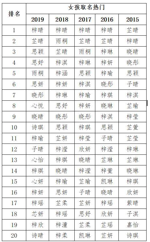 另一方面,除了“梓晴”,名单上还有“梓瑜”、“梓琪”、“梓妍”、“梓瑶”、“梓欣”,依然霸榜。