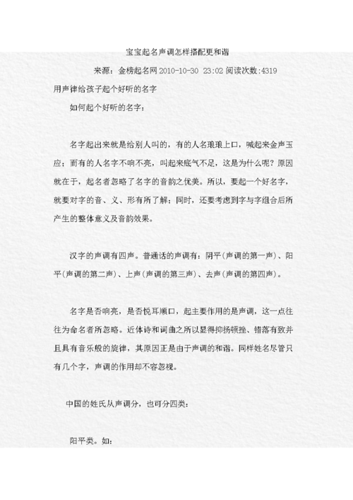 第三,声调组合要合理在命名时,名字中使用的单词的音调必须合理,不仅是名字,特别是当名字和姓匹配时,如果音调不合理,那么阅读就会缺乏美感,所以这一点尤为重要。