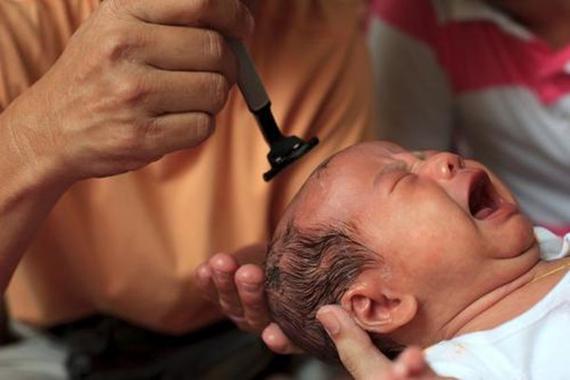 一些地方有这样的习俗,婴儿满月要剃个“满月头”,把胎毛甚至眉毛全部剃光。认为这样做,将来孩子的头发、眉毛会长得又黑、又密、又漂亮。专家认为,“满月剃胎发”毫无科学依据。头发长得快与慢、细与粗、多与少与剃不剃胎毛并无关系,而是与孩子的生长发育、营养状况及遗传等有关。