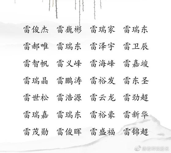 雷曦豪,雷曦桃,雷曦北,雷曦白,雷曦早,雷曦和,雷曦泽,雷曦泽,雷夏曦,雷曦之,雷曦来,雷曦平,雷浩平,雷晋琪,雷彪坤,雷喜亿,雷泽金,雷正祥,雷菲赫,雷众展。
