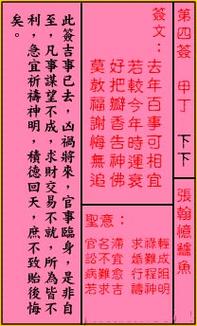 圣意,家,旺。、自身、安。、求财,春旺。、交易、遂。、婚姻、成。、六甲,防惊。、行人、到。、田蚕、利。、六畜、旺。、寻人、至。、公讼、胜。、移徒,如意。、丢失的东西,急于寻找。、疾病、安。、山坟,大吉。、爱情婚姻,如果问婚姻来了,过去的善行,今生的好婚姻,好偶马上来。、若有心仪者,劝君不要害羞,尽力求取,此事必双合。、交往已久,欲结连理,汝两相爱,大胆说出来。、若爱临分手,小事莫计较,宽容以相待,小别胜新婚。观音菩萨是东亚国家崇拜的常见菩萨之一。观音菩萨在各种释教图像或雕像中也很常见,品种繁多,变化很大。人们相信,只要他们在拜访时足够真诚,他们就能得到观音菩萨的祝福,然后恳求后一个精神标志,为未来的生活祈祷平安。郭汾阳是郭子仪,因被封为汾阳王,所以被称为郭汾阳,他的第六个儿子,嫁给了皇帝的女儿,夫妻和睦相处。一年后,郭子仪做了大寿,亲戚同事都来拜寿,独自一人的妻子不想拜,因为她是皇帝的女儿。为此,夫妻吵架,妻子投高皇帝,子仪见皇帝要求赦罪,但皇帝豁略大方,认为是家庭琐事,不算。