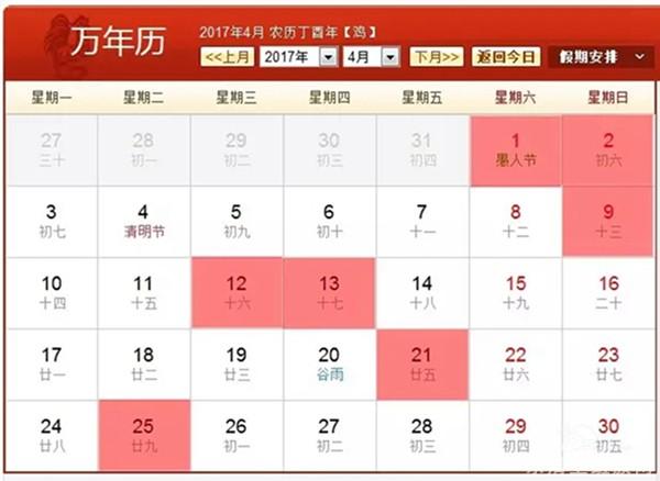 2017年4月黄道吉日查询结果如下: