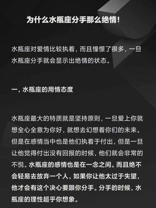 水瓶座有了分手的想法,为了不回忆过去的美好回忆,让他们哭泣,他们选择扔掉前任的照片、联系方式和礼物,什么也不留下。随着时间的推移,记忆必然会随着时间的推移慢慢抹去。水瓶座可以自由地做自己想做的事,也可以追求自己想要的独特生活方式。水瓶座的人希望当他们独处时,他们能像别人羡慕的那样生活。水瓶座会善待自己,爱自己,希望自己能充分享受一个人的生活。水瓶座谈恋爱,会谈恋爱,会把心交给对方!