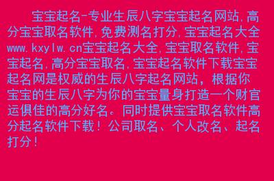 该网站的优势在于网站资源丰富,数据库庞大。其资源包括大量的历史文化、地理文化、名人典故、汉字文化等,为家长选择名称提供了极大的帮助。此外,该网站还充当了专业的名称网站,为大多数用户提供全面、详细、权威的名称信息,是家长免费选择佳中文名称的佳选择。