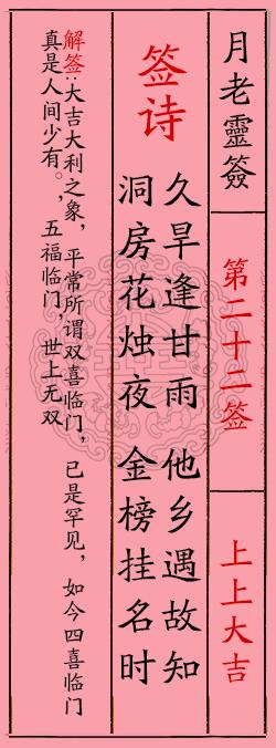 婚姻往往会吸引很多人的注意。毕竟,生活中的伴侣是一个非常重要的选择。月老灵签是民间常用的解签工具。22日,月老灵签与婚姻命运直接相关。让我们通过解签来了解婚姻。
