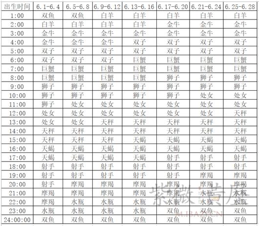 八字和星座对应关系