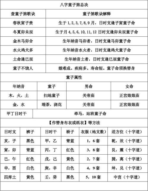 算小孩童子命