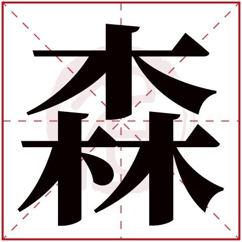 ;严格的样子:森严。;名字解释:许多树木被称为森林。名字,象征众多,交流广泛。喜命局缺木者使用。