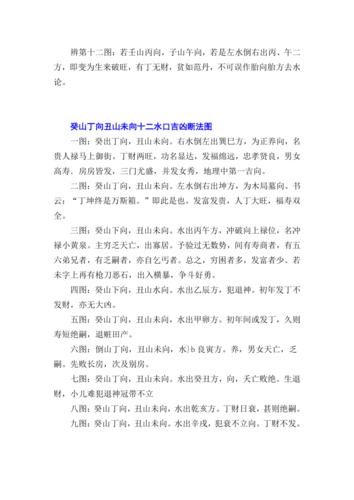 阴宅24山水口吉凶断中包括12座山和12条河流,它们的分布位置和朝向都与建筑物的风水息息相关。以下是24山水口的分布情况及其含义: