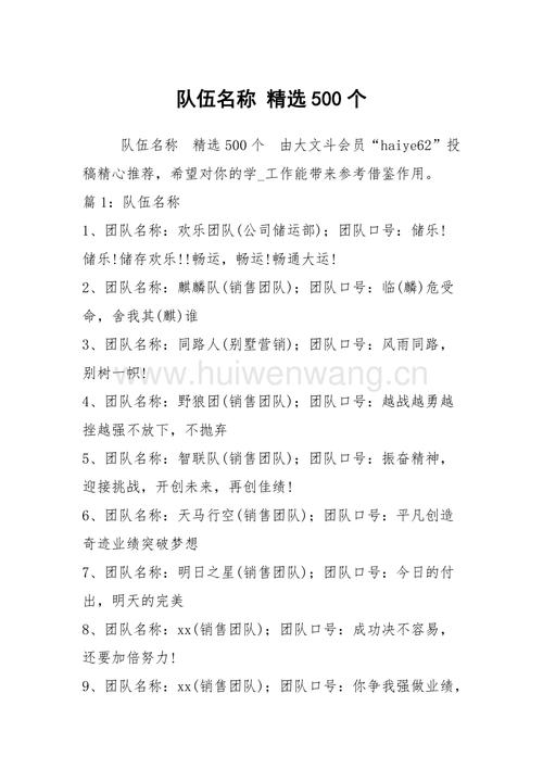 一、有创意的团队名字