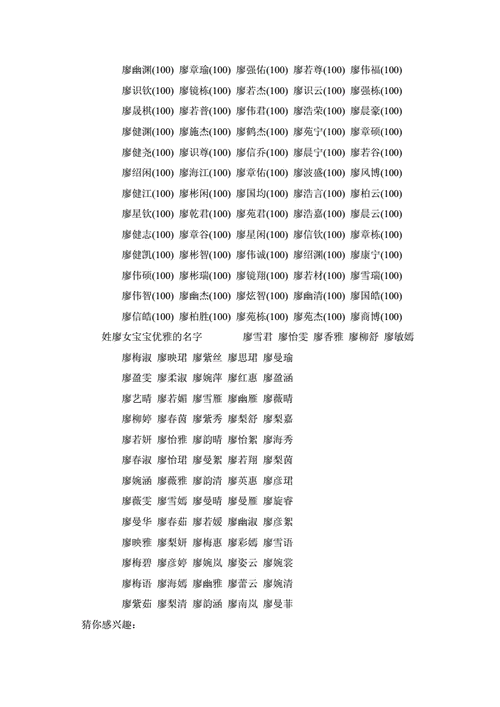 给孩子取个好名字一直是父母的重要任务。姓氏的命名方式也需要仔细考虑。以下是给廖姓的孩子取名的一些建议: