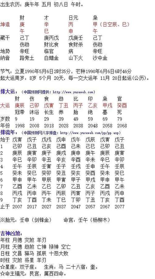 在中国传统的十二生肖中,属相通常以出生年份的地支为准。庚午出现在八字排盘中的天干地支中。根据八字五行的生克关系,庚代表金属性,下午代表火属性。因此,庚午生肖是一匹马。