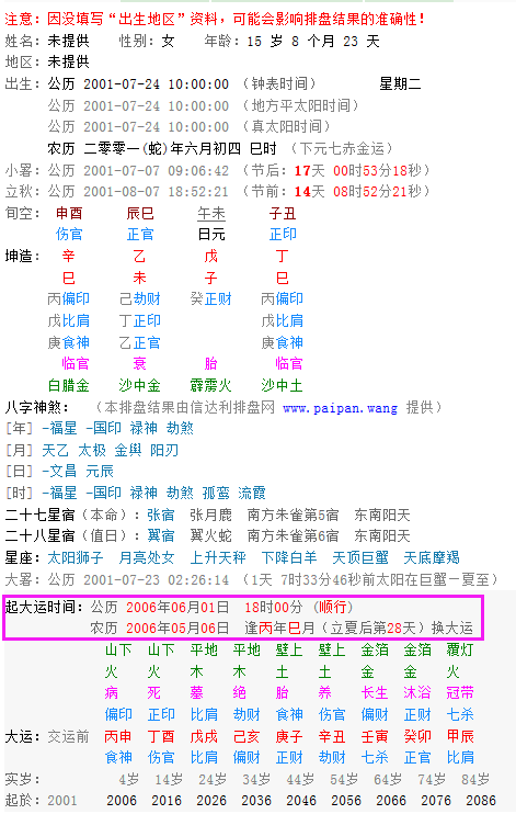 生日八字五行算命