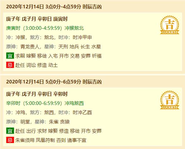辛四日【吉时】丑、辰、午、未【凶时】亥