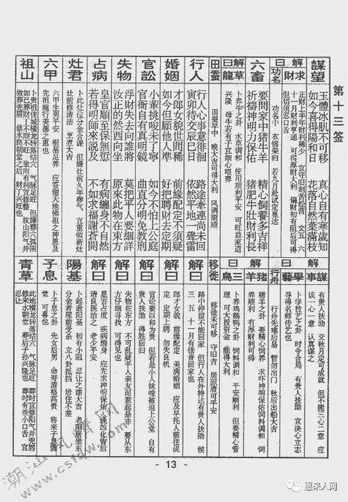 一切都有贵人的帮助。格局(要求什么对应)家庭欠(家庭欠和平),自己做福(要求更多祝福),求财意图{不能强求(顺其自然)},交易合作(交易成功),婚姻障碍{婚姻障碍(两个人在一起难)},六甲做福{六甲(要孩子祈祷)},行人有危险(要出门的人有危险)。诉讼损失(诉讼会损失大量的人力、物力、财力),移居不吉(乔迁不是很好),病安(病能安康)
