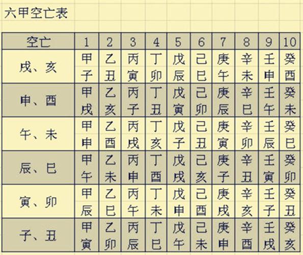 空亡,又称“六甲空亡”,分为六甲十天。因为十天干10天,与十二个地支相匹配,最后还剩两天,这两天轮空了。因此,当你在八字中再次看到这两天时,你将被视为“空亡”。