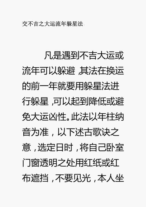解决运势不佳的办法面对好运,我们不需要太悲观和绝望,而是应该积极寻找解决问题的方法。以下是几种解决坏运气的通用方法,供您参考。