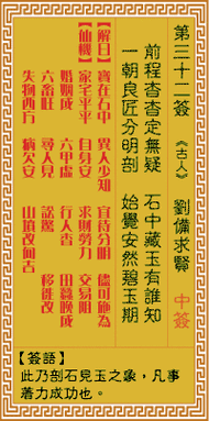 关老爷灵签抽签第三十二签