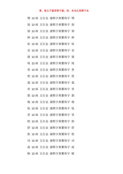 以上是五行属金字12画全集。你可以通过这些偏见更好地理解金属字。当然,这里只列出了一部分。如果你想对五行属性理论有更深入的了解,你需要更深入的学习。