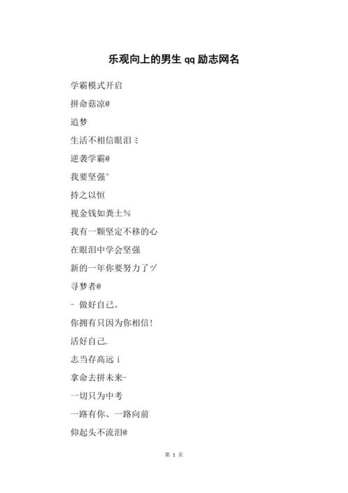第三,乐观的名字也可以反映一种积极的生活态度。生活中的每一天都是一种新的经历,每一次失败都是一种新的尝试。乐观的人往往对生活有积极的态度,并对未来保持乐观的信念。