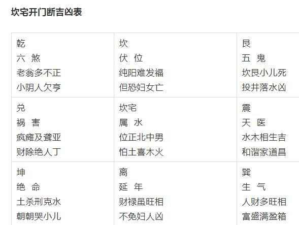 坎命吉凶方不仅是八宅风水的一个方向,也是判断吉凶的一种方式。在八宅风水中,每个人的命运和生活环境都与五行有关。坎命吉凶方是指命主出生或住宅门口的方向属于水位。