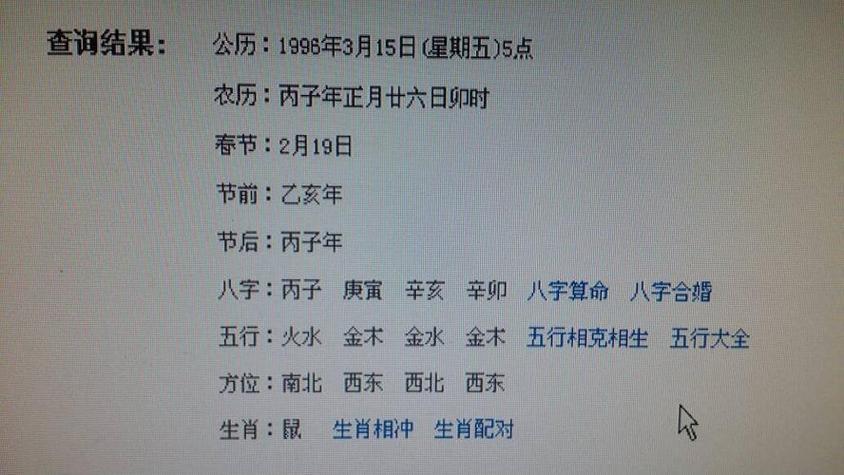 但严格的话,算八字是以“阴阳历”来算生日的.既不是阴历,也不是阳历.它是根据24节气来定月的.节前为上一个月,节后为下一个月.如果某人出生在今年的正月初十,假如立春在十一,年柱还是去年,月柱还是去年的丑月.如果出生在今年12月25日,而立春在12月24日,依然一下一年的年柱,和下一年正月的月柱来算命.比较麻烦,但正宗。现在很多软件都简单按阴历算,严格说来应该是不大对的。