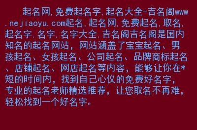 排名最好的网站排名(不分先后):1、起名通;2、起名网;3、周易命名网;4.、得名Pro;5、乐名堂;6、美名腾;7、中国名网;8、名典名网;9、Specialname;10、Nameberry。