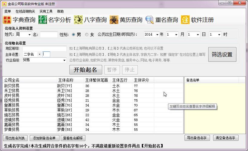 以先进的数学预测方法和专业的计算方法,帮助企业和个人计算商标和企业名称,是一种非常实用的工具。