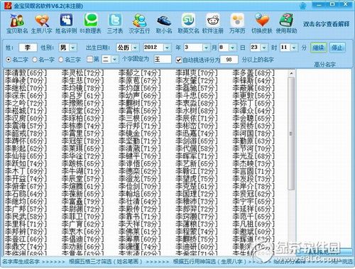 周易命名大师软件采用五行平衡命名法,结合宝宝姓氏、性别、生日、天格、地格、人格、外格、总格、三才数学、基础运输、成功运输、人际关系、五行元素、好听等因素,真正为宝宝获得高分(99-100分)、与此同时,参照各种书籍、文献、字典,迅速产生数以万计的好名字,您还可以通过五行、笔画数、拼音、指定含字等方式在输出结果中筛选出令人满意的名称。