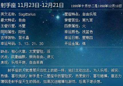 星座按出生当年的阳历(新历、公历)生日划分。以下是星座日期划分表。通过比较阳历生日,你可以知道是什么星座。