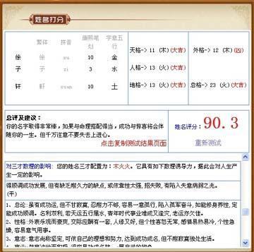 店名测试打分免费测试技巧1、根据行业用字想要起一个高分好名,那么在字的选择上,可以借助行业属性字起名。正如以上小编所分享的案例一样,以此助运店铺的发展。这样的方式,不仅能突出店铺的行业特点,而且也能加深顾客的第一印象。2、运用店主喜用神当然,除了借助行业用字外,其店主的喜用神也是可以借助的,因为在免费测试打分中,此项也占有一定的比例。所以,大家巧妙借助店主所喜的五行属性字给店铺命名,在店名测试打分中能得到一个好分数。3、借助寓意好的字店名测试不仅仅只关注于比较专业的方面,其名字的寓意内涵,音形义等方法也是打分的方向。所以,大家想要给店铺起一个高分名字之时,还可以借助寓意好的字来给店铺起名。免费店铺取名打分测试案例沉香阁饭店注册地:天津店名:沉香阁类型:饭店法人:张天综合分:72分(财运度:85分、吉祥度:33分、文化内涵:100分、传播度:49分)财运分析:店名的卦象为明夷卦,卦象财运为:处于不利的环境,宜心境坦然地处置险恶的条件,增强心理素质,承受各种压力。表面柔顺小心,内心洞察事理,当离去则离去,避免灾祸,脱离危险。防患于未然,坚持逆境中奋斗。吉祥分析:(春日花开)智勇得志,博得名利,统领众人,繁荣富贵。字义解释:沉:代表着沉着、沉稳、不慌张的意思,香:字是指香气,寓指饭店的饭菜十分的香,十分的诱人,阁:指房子,在古时候是指官署名,内阁的简称,如阁学,非常有文化底蕴的地方,这里取名为沉香阁,古色古香,十分典雅好听。