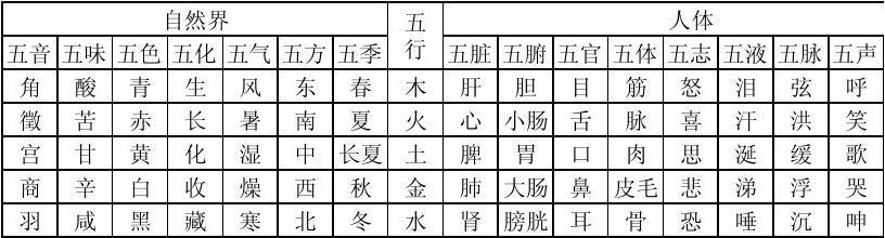 肝属木、心属火,肺属金,脾属土,肾属水。