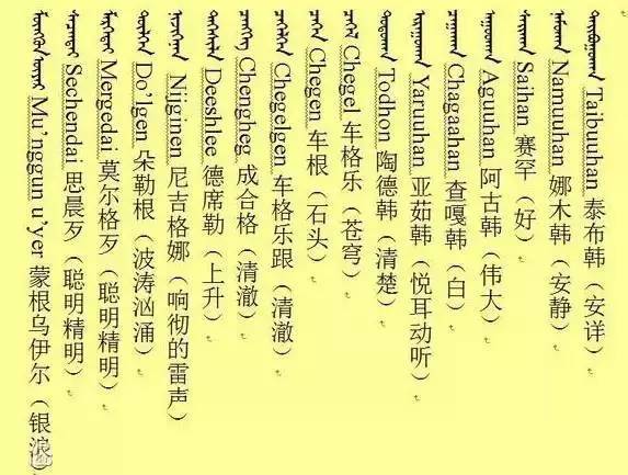 炜涛、轩启、汶銮、志文、宇任、强达、隆方、材峻、贤睿阿开头的蒙语名字大全。